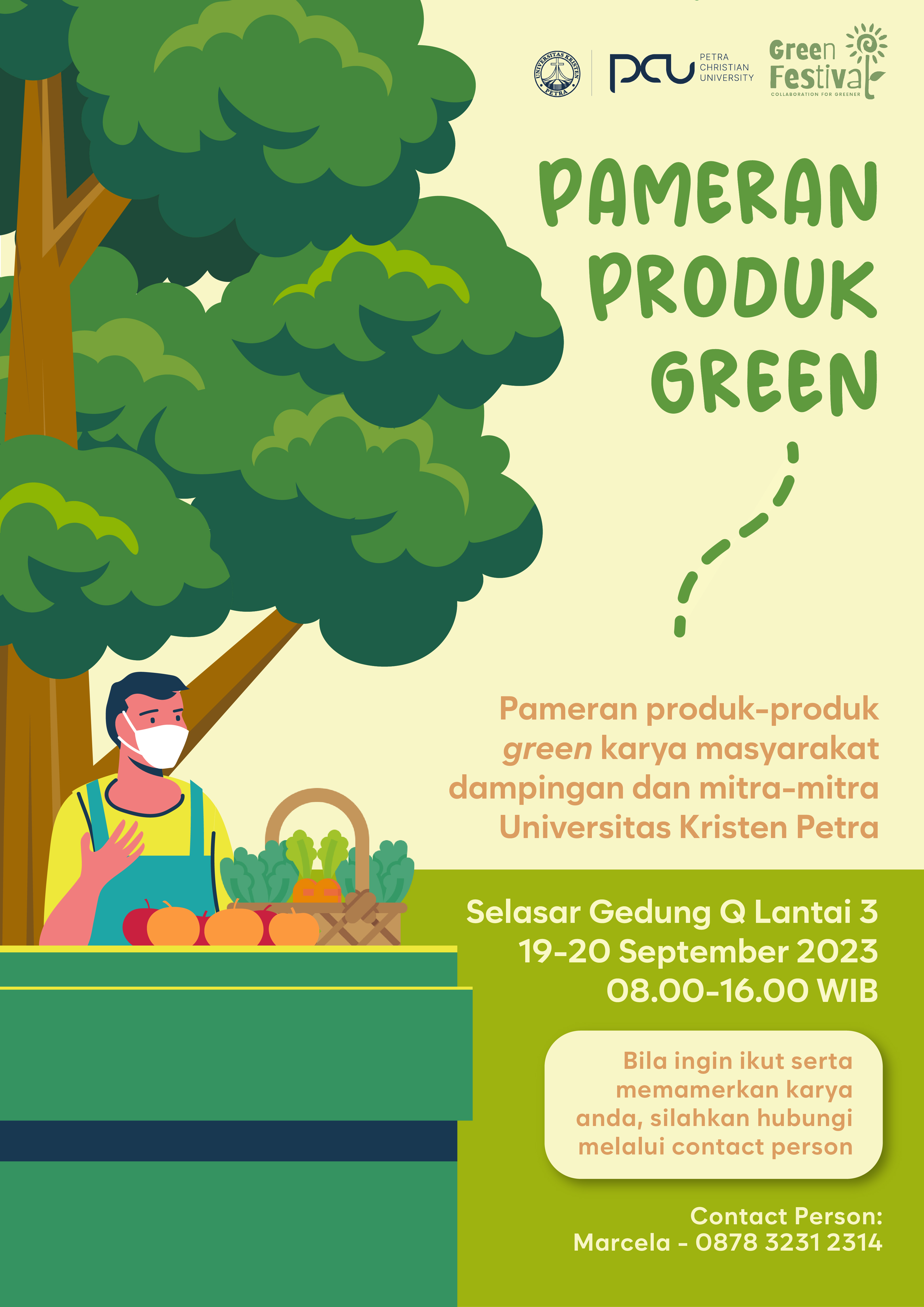 Dalam rangka memeriahkan Dies Natalis UK Petra yang ke-62, Lembaga Penelitian dan Pengabdian Masyarakat mengadakan Pameran produk green . Acara ini diselenggarakan pada 19-20 September 2023.
