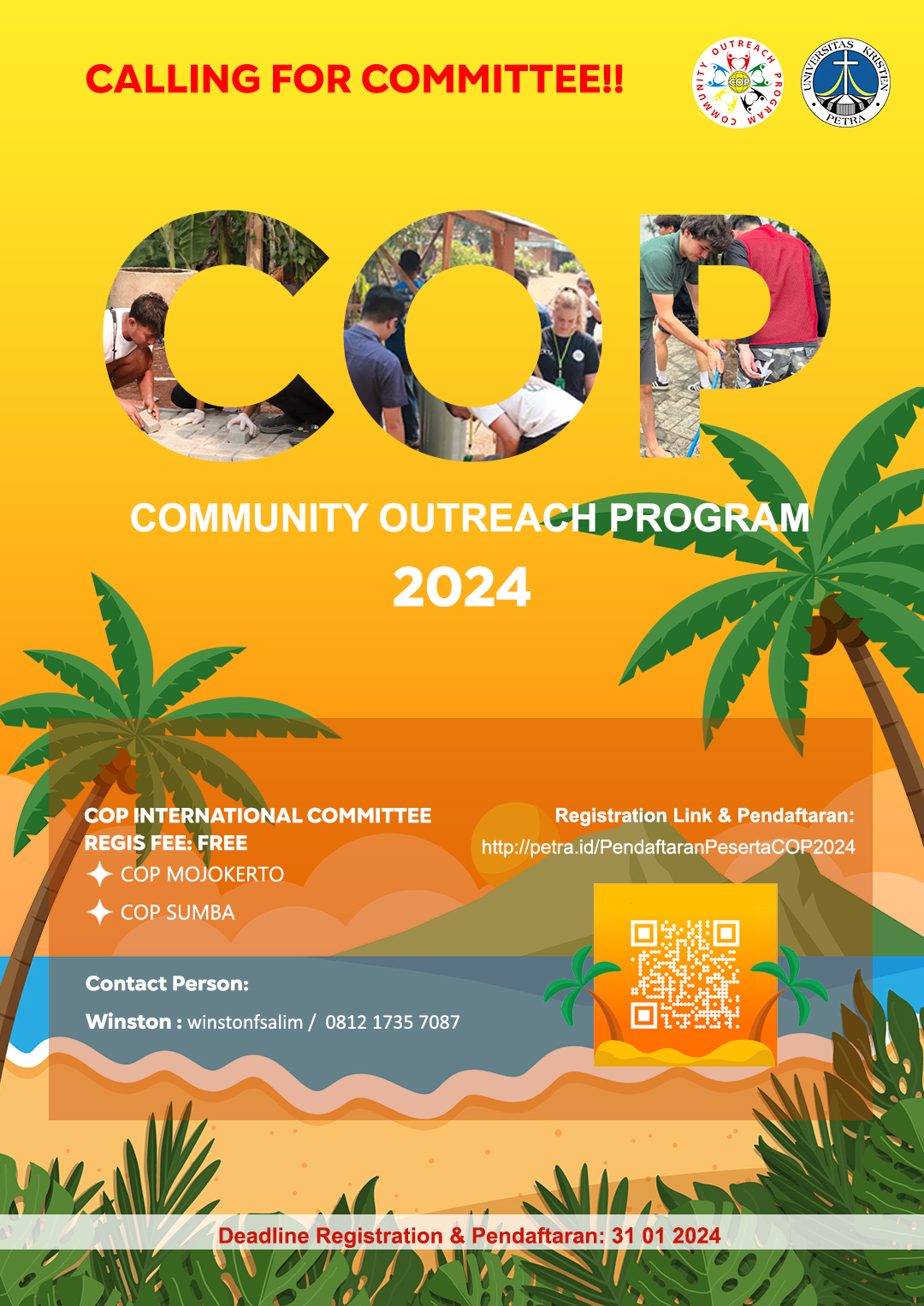 2. Pendaftaran DIBUKA tanggal 25 Oktober 2023 – 31 Januari 2024, melalui link: petra.id/PendaftaranPesertaCOP2024