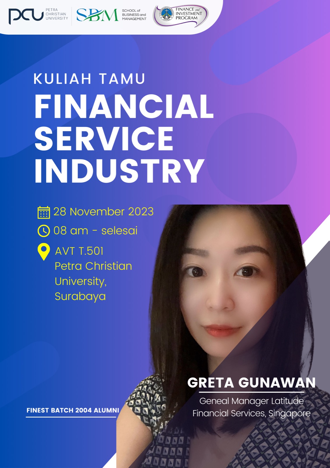 Kuliah tamu dengan topik Financial Service Industry, diselenggarakan oleh Program Manajemen Keuangan pada tanggal 28 Nov 2023 dengan narasumber Greta Gunawan.