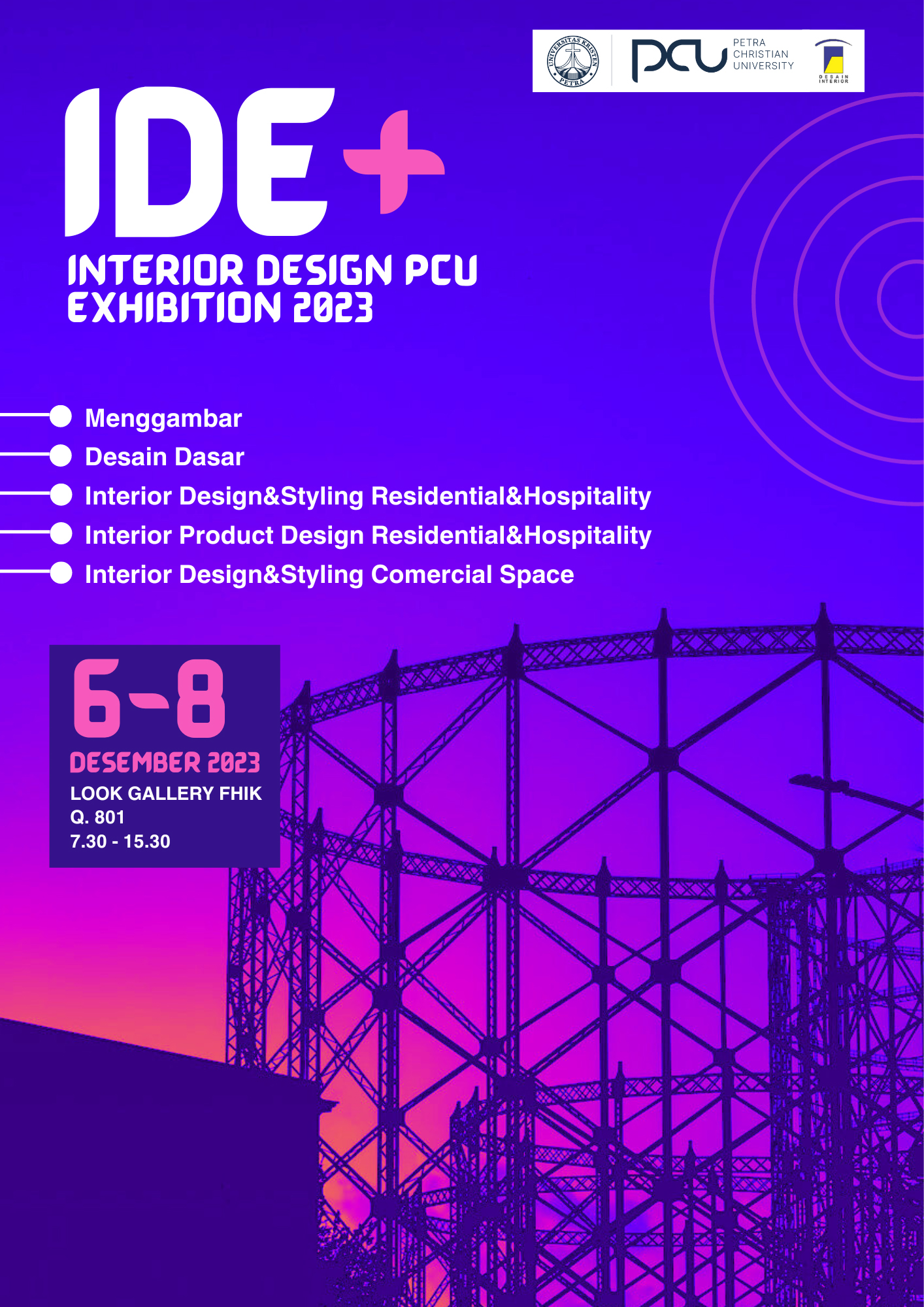 IDE+ merupakan Pameran Akhir Semester dari Prodi Desain Interior dengan jenis karya sebagai berikut: