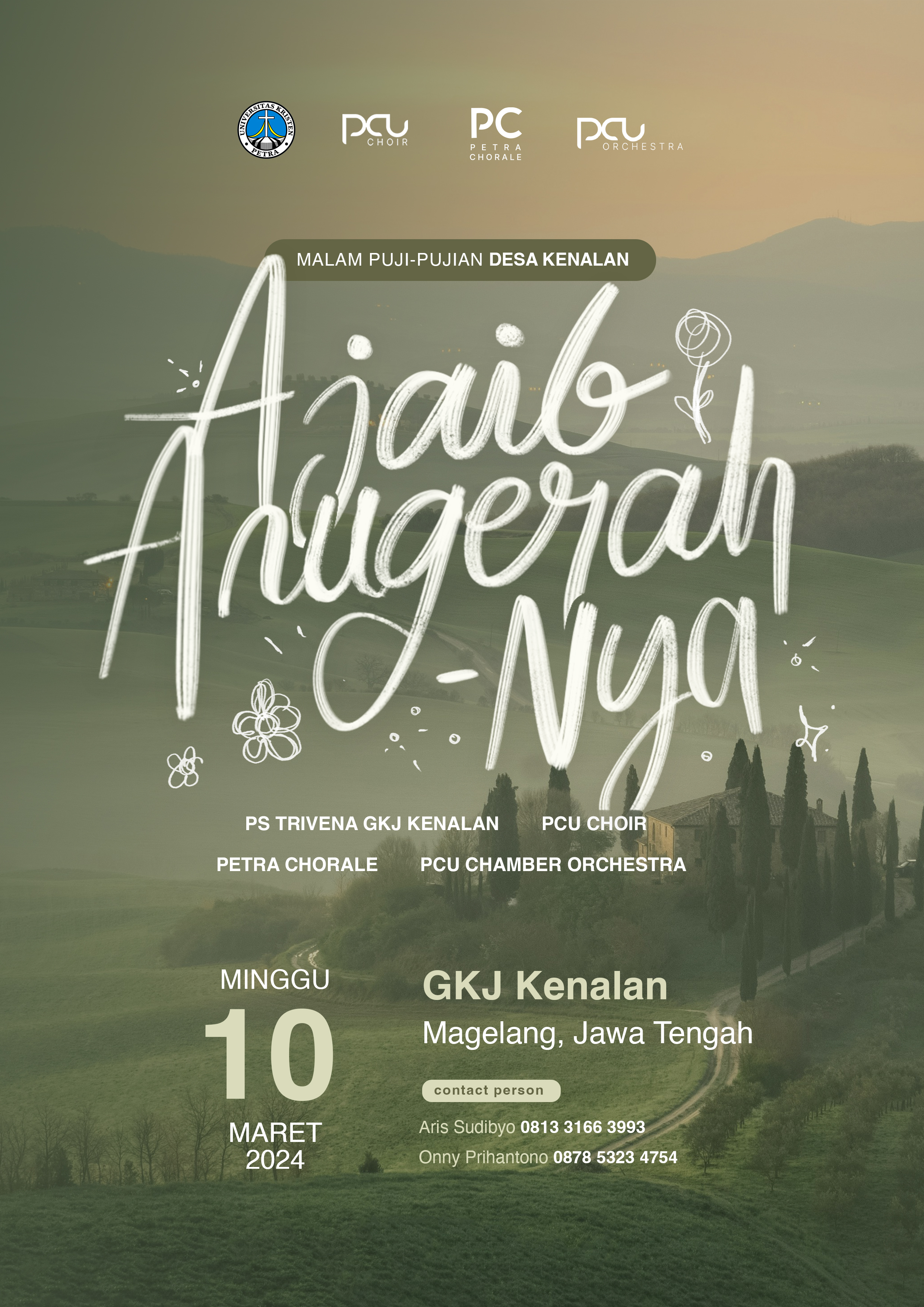 Pusat Pengembangan Musik Gerejawi (PPMG) Universitas Kristen Petra Surabaya berkolaborasi dengan GKJ Kenalan, Magetan mengadakan Malam Puji-Pujian yang berjudul “Ajaib Anugerahnya”. Acara ini diadakan pada Minggu, 10 Maret 2024.