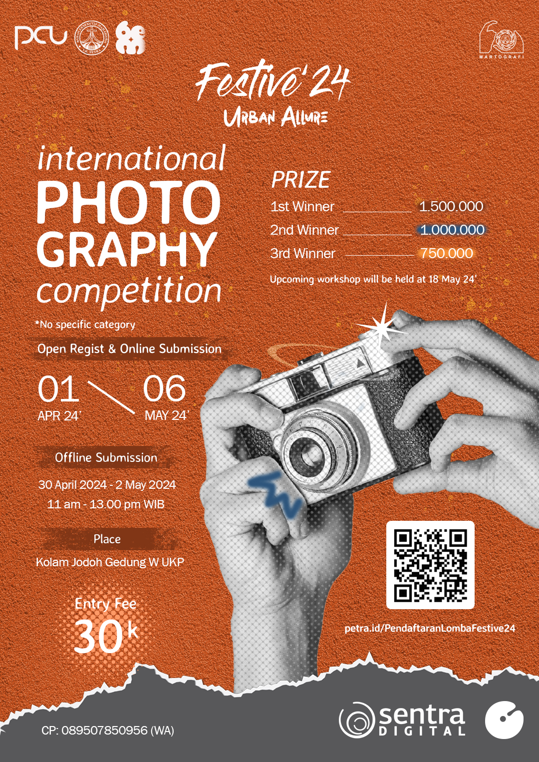 Festive merupakan kegiatan setiap tahunnya yang diadakan oleh UKM Martografi Universitas Kristen Petra. Rangkaian acara ini adalah Photography Competition, Photography Seminar dan Photography Exhibition. Untuk pendaftaran lomba fotografi ini, dibuka pada tanggal 01 April - 26 Mei 2024. Sedangkan untuk workshop dilaksanakan pada 18 Mei 2024.