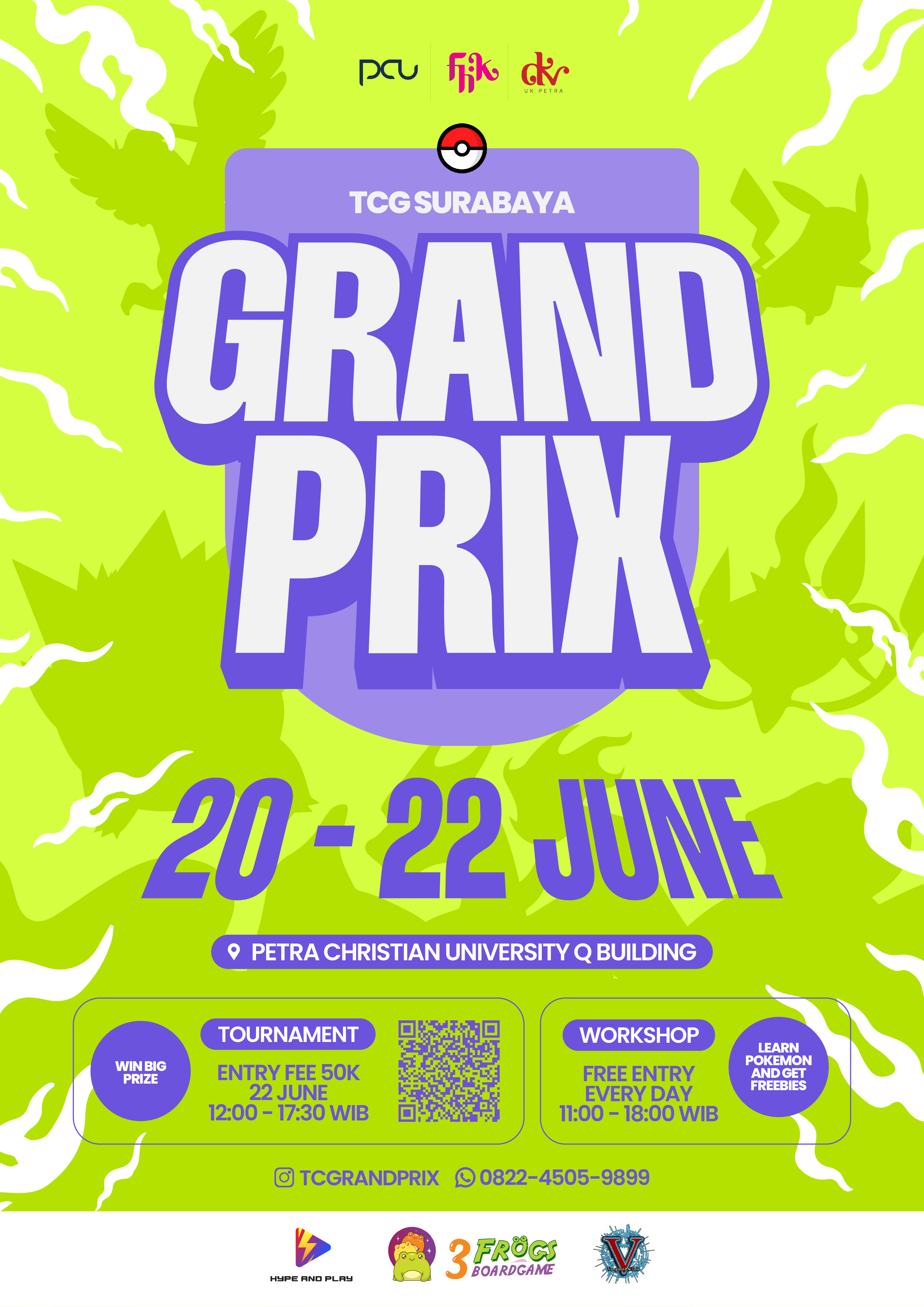 Tournament Pokemon TCG Surabaya Grand Prix diselenggarakan oleh HimaVistra UK Petra Surabaya, Pada Sabtu 22 Juni 2024, di UK Petra gedung Q