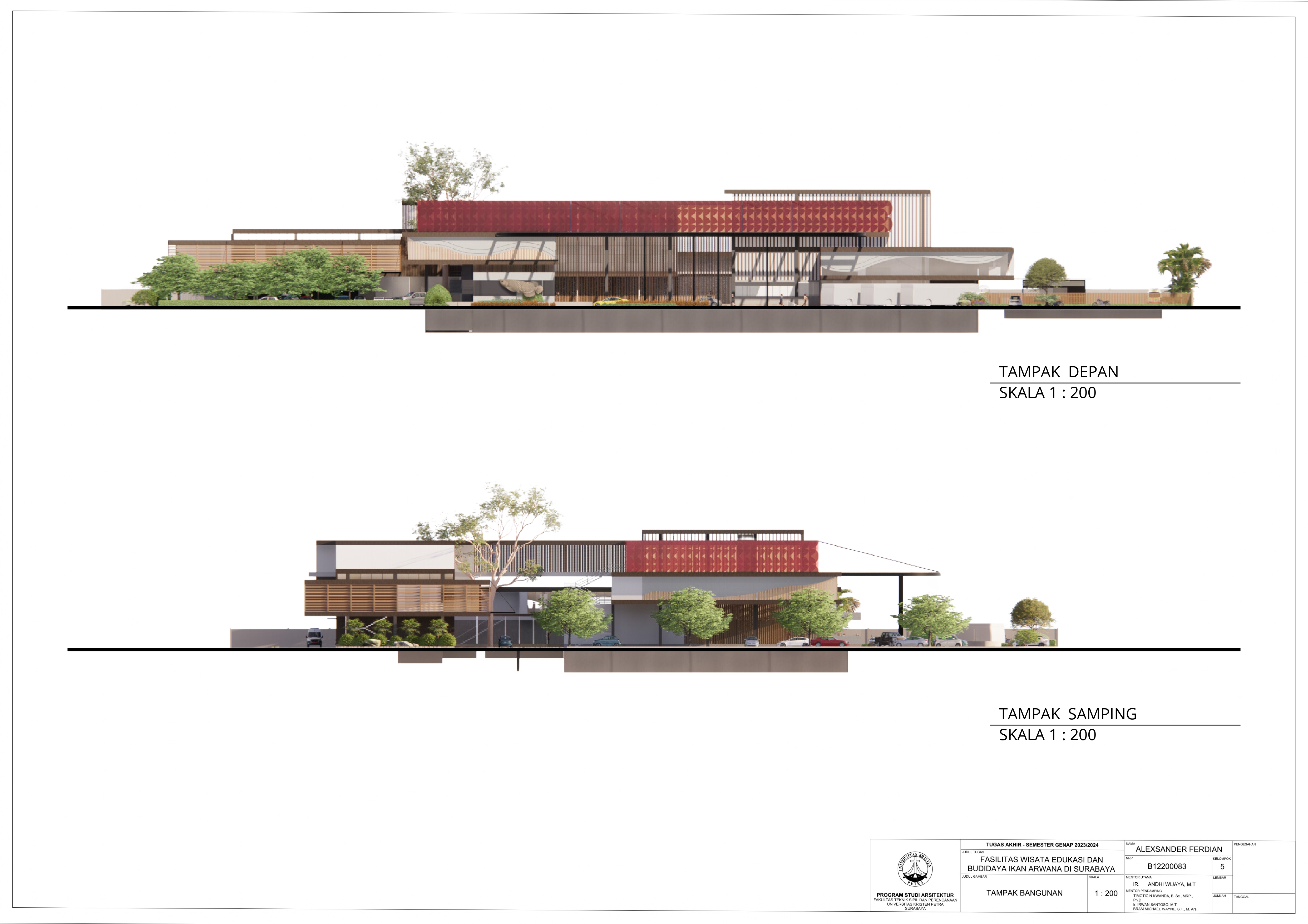 Ikan arwana adalah salah satu ikan hias yang sangat digemari masyarakat. Ikan arwana memiliki histori sebagai ikan pangan yang berkembang menjadi ikan hias yang sangat populer dan mahal. Ikan arwana memiliki julukan sebagai “Raja Ikan Hias” karena keindahannya. Dengan naiknya popularitas ikan arwana sebagai ikan hias membuat masyarakat memburu ikan arwana secara besar-besaran, sehingga populasi ikan arwana semakin menurun. Seiring berjalannya waktu upaya-upaya penangkaran berhasil dilakukan sehingga populasi ikan arwana bisa dikontrol. Namun, penangkaran-penangkaran dan fasilitas untuk ikan arwana belum tersebar secara merata di Indonesia. Fasilitas Wisata Edukasi dan Budidaya Ikan Arwana di Surabaya hadir untuk memfasilitasi kebutuhan masyarakat kota Surabaya. Perencanaan fasilitas ini bertujuan untuk memberikan edukasi kepada masyarakat serta memberikan fasilitas untuk masyarakat menyalurkan hobi di bidang ikan arwana. Fasilitas akan menghadirkan sebuah galeri untuk pembelajaran tentang ikan arwana dan menghadirkan fasilitas budidaya untuk masyarakat menyalurkan hobi. Dalam proses desain, fasilitas ini menggunakan pendekatan utilitas dengan konsep hemat energi. Pendekatan utilitas digunakan untuk memaksimalkan penggunaan energi dengan memanfaatkan desain bangunan dengan alam.