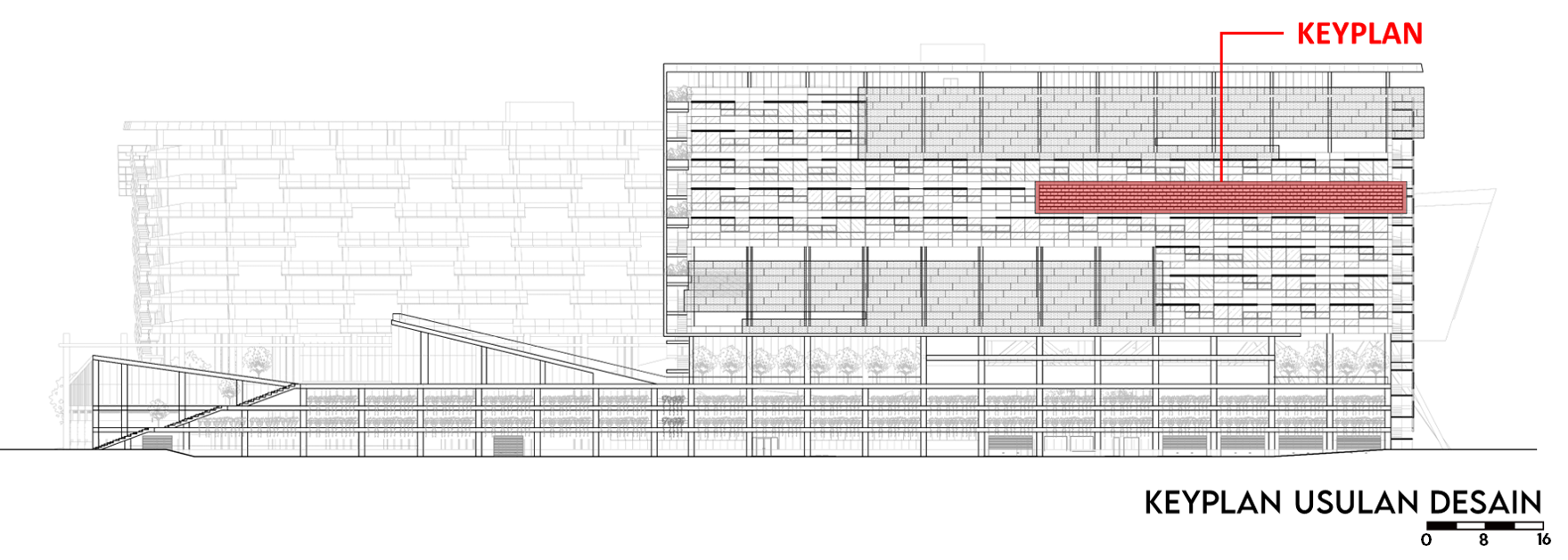 Pemanasan global dan emisi gas rumah kaca (GRK) semakin meningkat, salah satunya dipicu oleh bangunan dengan material kaca pada selubungnya. Walaupun kaca meningkatkan kenyamanan visual, tetapi juga dapat meningkatkan perolehan panas yang menyebabkan kebutuhan energi pendingin semakin tinggi. Standar Nasional Indonesia (SNI) 6389:2020 menawarkan strategi konservasi energi pada selubung bangunan, termasuk strategi penggunaan alat peneduh eksternal untuk mengurangi Overall Thermal Transfer Value (OTTV). Tetapi, di sisi lain strategi penggunaan alat peneduh eksternal dapat mengurangi intensitas pencahayaan alami, sehingga menambah kebutuhan energi untuk pencahayaan buatan. Oleh karena itu dibutuhkan optimalisasi terhadap OTTV dan pencahayaan alami agar dapat mengurangi penggunaan energi serta mencapai kenyamanan termal dan visual yang baik. Tujuan dari penelitian untuk mengevaluasi tipe dan konfigurasi alat peneduh yang dapat mengoptimalisasi OTTV dan kinerja pencahayaan alami, mengidentifikasi seberapa besar pengaruh variabel OTTV dan kinerja pencahayaan alami, serta menciptakan desain alat peneduh yang dapat mengoptimalisasi OTTV dan kinerja pencahayaan alami. Metode yang digunakan yaitu kuantitatif dengan eksperimen menggunakan program simulasi Ecotect untuk mendapatkan nilai shading coefficient efektif (SCeff) dan Ladybug Tools untuk menganalisis kinerja dari pencahayaan alami. Hasil penelitian menunjukkan bahwa alat peneduh eksternal tipe kombinasi (eggcrate) mampu menurunkan OTTV hingga mencapai batas maksimal yaitu sebesar 16% dengan menjaga intensitas pencahayaan alami (sDA) agar tetap dalam ambang batas yaitu 61.8%, serta terbebas dari silau (sGA) sebesar 94.9%. Terdapat korelasi antara OTTV dan kinerja pencahayaan alami, peningkatan OTTV berbanding lurus dengan intensitas pencahayaan alami dan silau. Korelasi tertinggi ditemukan pada tipe vertikal, diikuti oleh horizontal, dan terendah pada kombinasi. Ada dua alternatif desain yang keduanya mempunyai kinerja yang baik dan mempunyai perbedaan yang tidak terlalu signifikan. Alternatif satu menghasilkan intensitas silau yang lebih rendah namun OTTV sedikit lebih tinggi, sementara alternatif dua memberikan OTTV yang lebih rendah dan intensitas pencahayaan alami yang lebih baik.