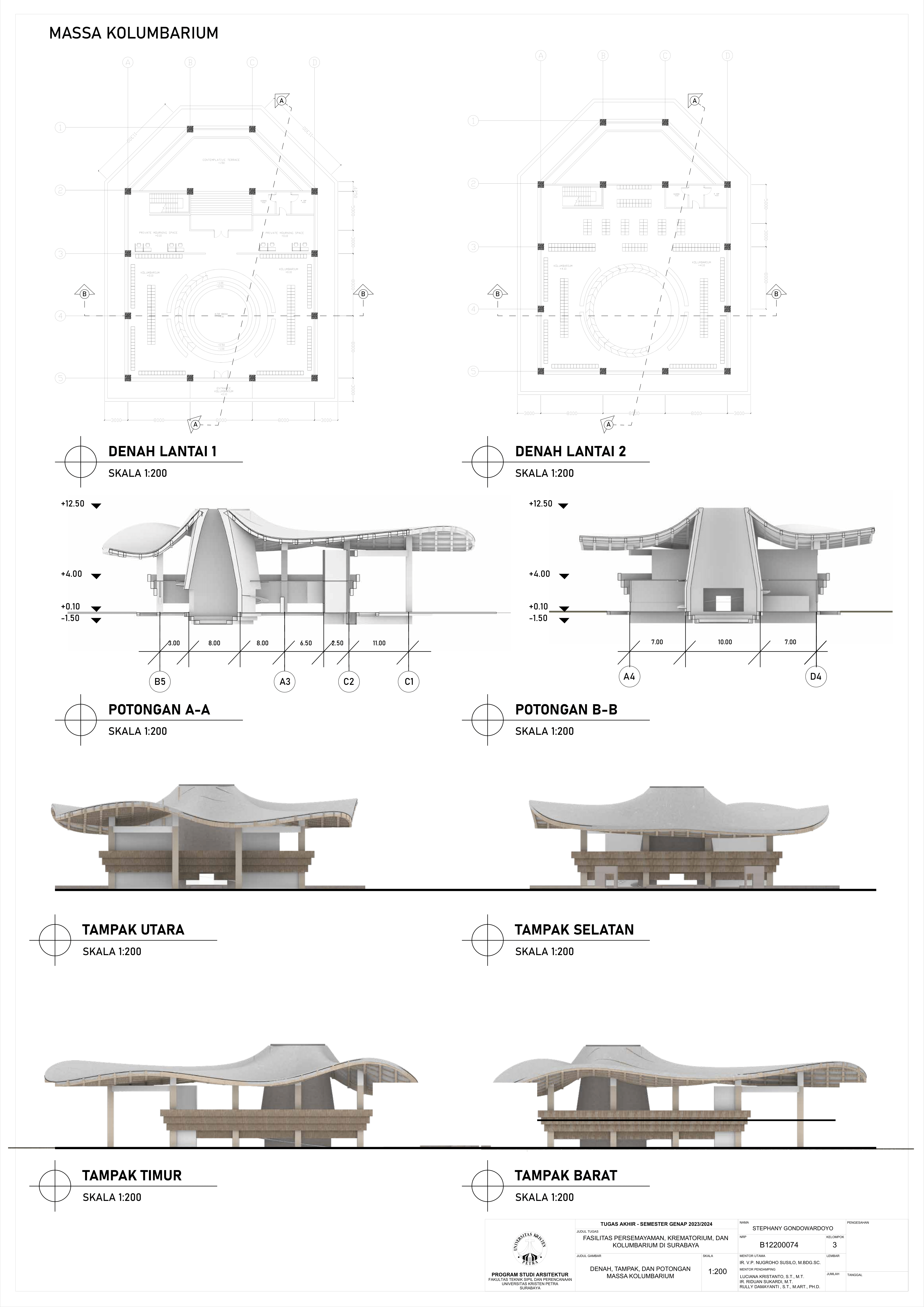 Kematian merupakan fase tak terhindarkan dalam kehidupan semua makhluk hidup, termasuk manusia. Sebagai kota terbesar di Jawa Timur, Kota Surabaya yang padat penduduk kian mengalami pertumbuhan angka kematian sehingga dibutuhkan fasilitas duka yang dapat menampung kebutuhan berkabung masyarakat. Namun, pada fasilitas eksisting didapati adanya beberapa kekurangan yakni, tata letak dan kapasitas fasilitas eksisting yang belum mencukupi kebutuhan masyarakat dan kurangnya pertimbangan terhadap kebutuhan emosional keluarga berduka. Selain itu, fasilitas duka eksisting hanya menawarkan metode pemakaman konvensional yang menimbulkan polusi lingkungan, baik melalui penguburan maupun perabuan jenazah. Oleh karena itu, dibutuhkanlah fasilitas duka yang mampu memenuhi kebutuhan duka masyarakat Kota Surabaya secara terpadu, kontekstual, serta mewadahi perubahan emosional pengguna selama proses duka. Perancangan fasilitas duka berupa fasilitas persemayaman, krematorium, dan kolumbarium bertujuan memenuhi kebutuhan akan ruang duka yang mempertimbangkan aspek manusia dan aspek sistem. Aspek manusia meliputi; kebutuhan akan persemayaman dan proses berkabung yang layak bagi jenazah maupun keluarga berduka melalui fasilitas duka dengan karakter ruang sakral serta interaksi bangunan dengan lingkungan sekitarnya. Aspek sistem meliputi tatanan sistem sirkulasi dalam kawasan fasilitas duka serta penerapan metode pemakaman yang ramah lingkungan melalui sistem kremasi air (aquamation). Oleh karena itu, pendekatan perancangan yang digunakan merupakan pendekatan arsitektur transenden.