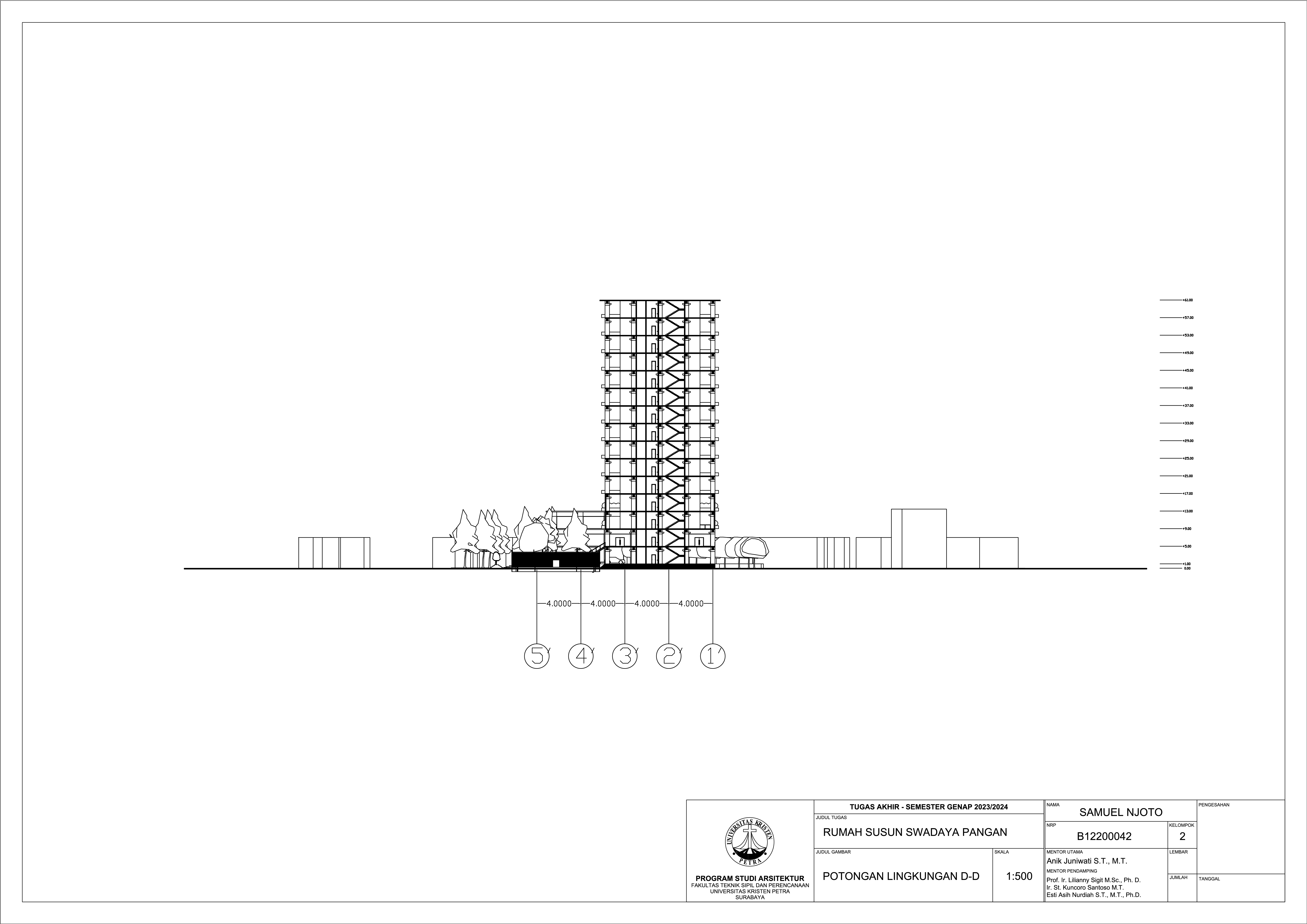 Pertumbuhan penduduk di Jakarta telah mencapai 10,64 juta jiwa pada tahun 2022, dengan luas lahan yang terbatas hanya 661,52 km². Fenomena ini disebabkan oleh migrasi besar-besaran ke ibukota untuk mencari pekerjaan dan meningkatkan kualitas hidup, meskipun banyak penduduk yang menghadapi kesulitan ekonomi dan kekurangan tempat tinggal yang layak. Jumlah pengangguran mencapai 397.623 jiwa, sementara masyarakat miskin mencapai 477.830 jiwa. Sebagai respons, pemerintah Jakarta mengadopsi strategi pembangunan rumah susun untuk menyediakan tempat tinggal yang terjangkau bagi masyarakat berpenghasilan rendah. Rumah susun tidak hanya menawarkan solusi atas keterbatasan lahan, tetapi juga memperbaiki citra kota dan mengurangi pencemaran lingkungan dari bangunan liar di sepanjang Sungai Ciliwung. Selain itu, pengembangan urban farming di dalam rumah susun memberikan fasilitas tambahan yang mendukung kehidupan masyarakat. Urban farming meningkatkan ketersediaan lahan hijau di perkotaan, memproduksi pangan lokal seperti sayur-sayuran dan buah-buahan, serta menciptakan ruang publik yang produktif. Ini tidak hanya meningkatkan kualitas hidup masyarakat kota tetapi juga mendukung keberlanjutan lingkungan perkotaan. Hasil implementasi ini menunjukkan potensi untuk mengatasi masalah kepadatan penduduk, kesulitan perumahan, dan kekurangan pangan di perkotaan. Dengan integrasi yang tepat antara pembangunan rumah susun dan fasilitas urban farming, Jakarta dapat menghadapi tantangan pertumbuhan populasi yang berkelanjutan dengan cara yang berkelanjutan dan inklusif.