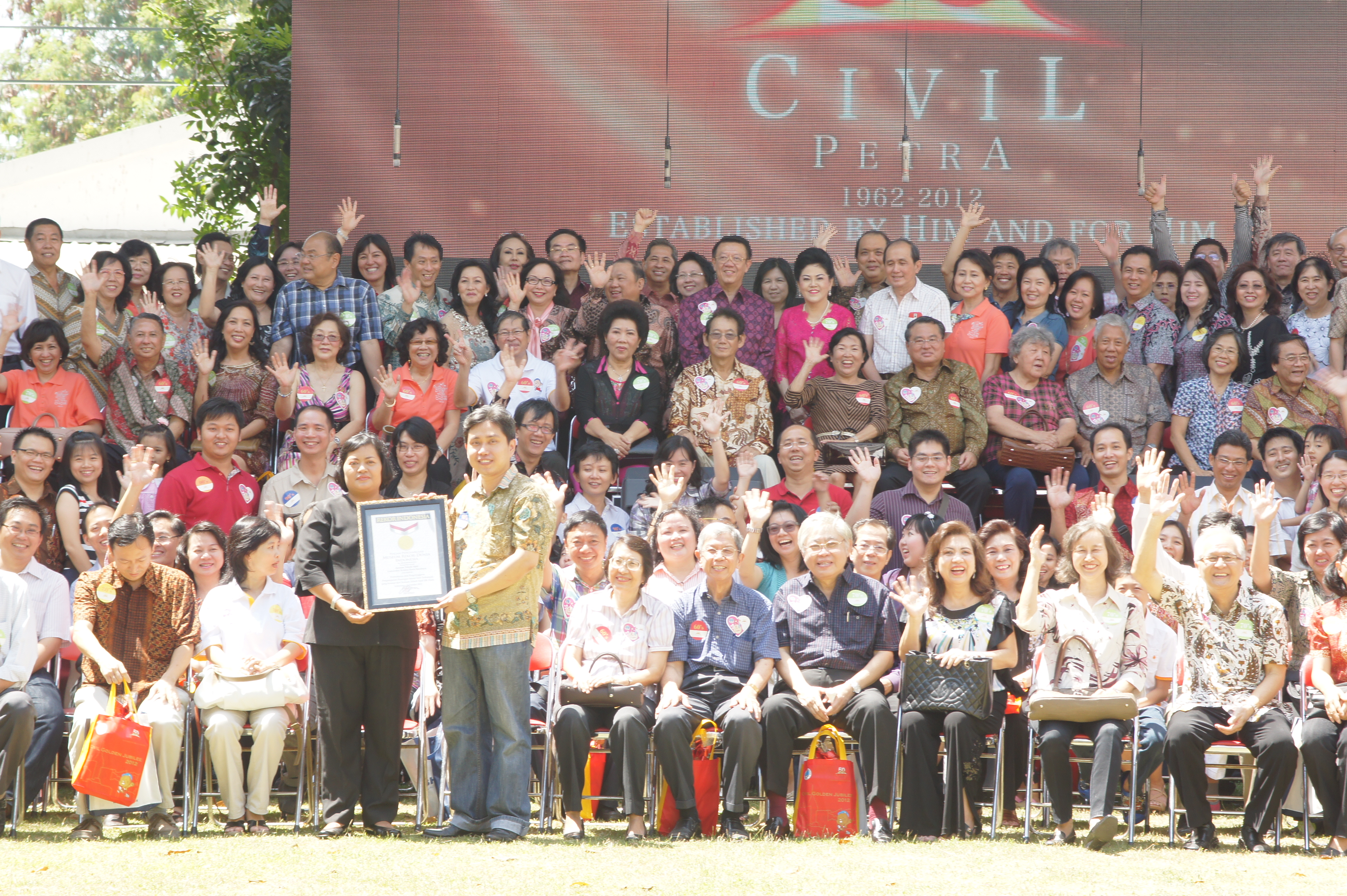 Penyerahan piagam penghargaan Museum Rekor Indonesia (MURI) kepada Jurusan Teknik Sipil Universitas Kristen Petra atas rekor "Pemrakarsa Pasangan Suami Istri Terbanyak yang Berasal dari Jurusan Teknik Sipil UK Petra" pada acara Civil Golden Jubilee 2012" 15 September 2012 di Kampus UK Petra. Penghargaan diterima oleh Ketua Jurusan Teknik Sipil Dr. Daniel Tjandra, S.T., M.Eng.