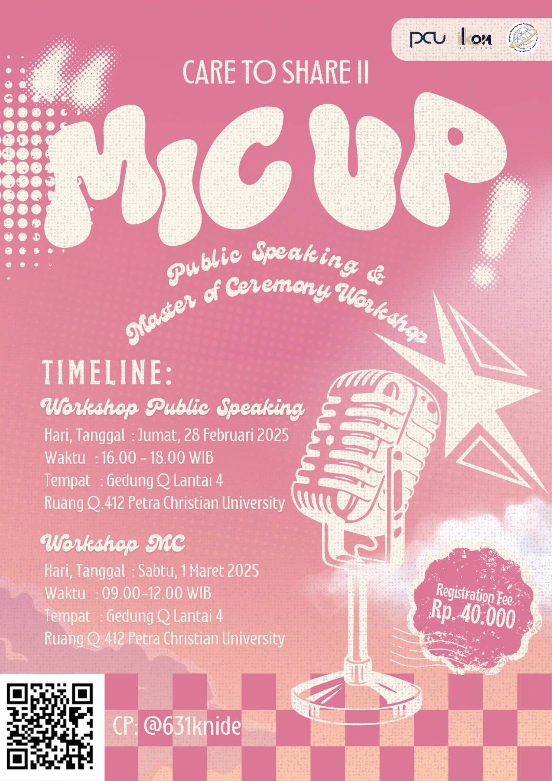 Ready to level up your public speaking and MC skills? 🎤✨ Join us at 𝘾𝙖𝙧𝙚 𝙏𝙤 𝙎𝙝𝙖𝙧𝙚 𝙄𝙄: 𝙈𝙞𝙘 𝙐𝙥!, where you’ll get hands-on experience and pro tips to boost your confidence on stage! 🤩
