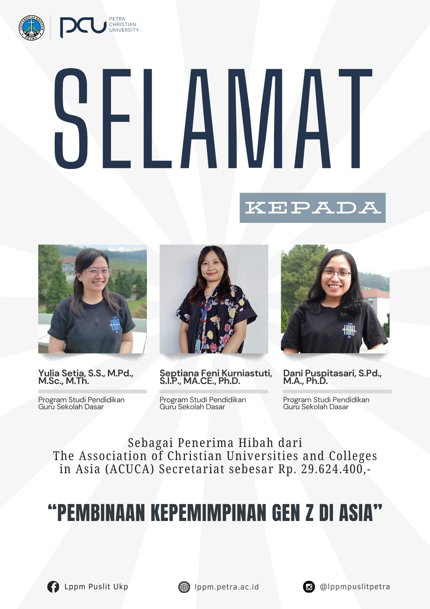 Selamat atas prestasi yang telah diraih Yulia Setia, Septiana Feni Kurniastuti, Dani Pustpitasari dalam mendapatkan dana hibah dari ACUCA.