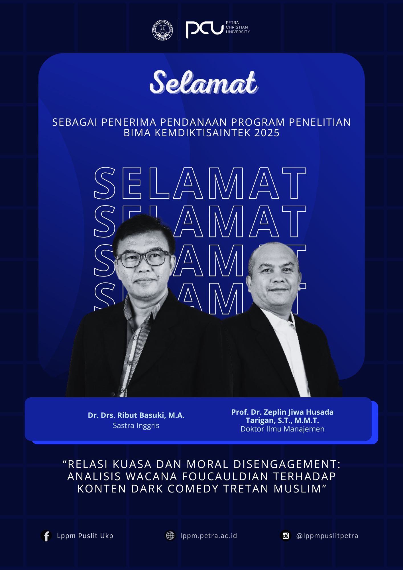 Selamat atas prestasi yang diraih oleh Prof. Dr. Zeplin Jiwa Husada Tarigan, Dr. Ribut Basuki, M.A.