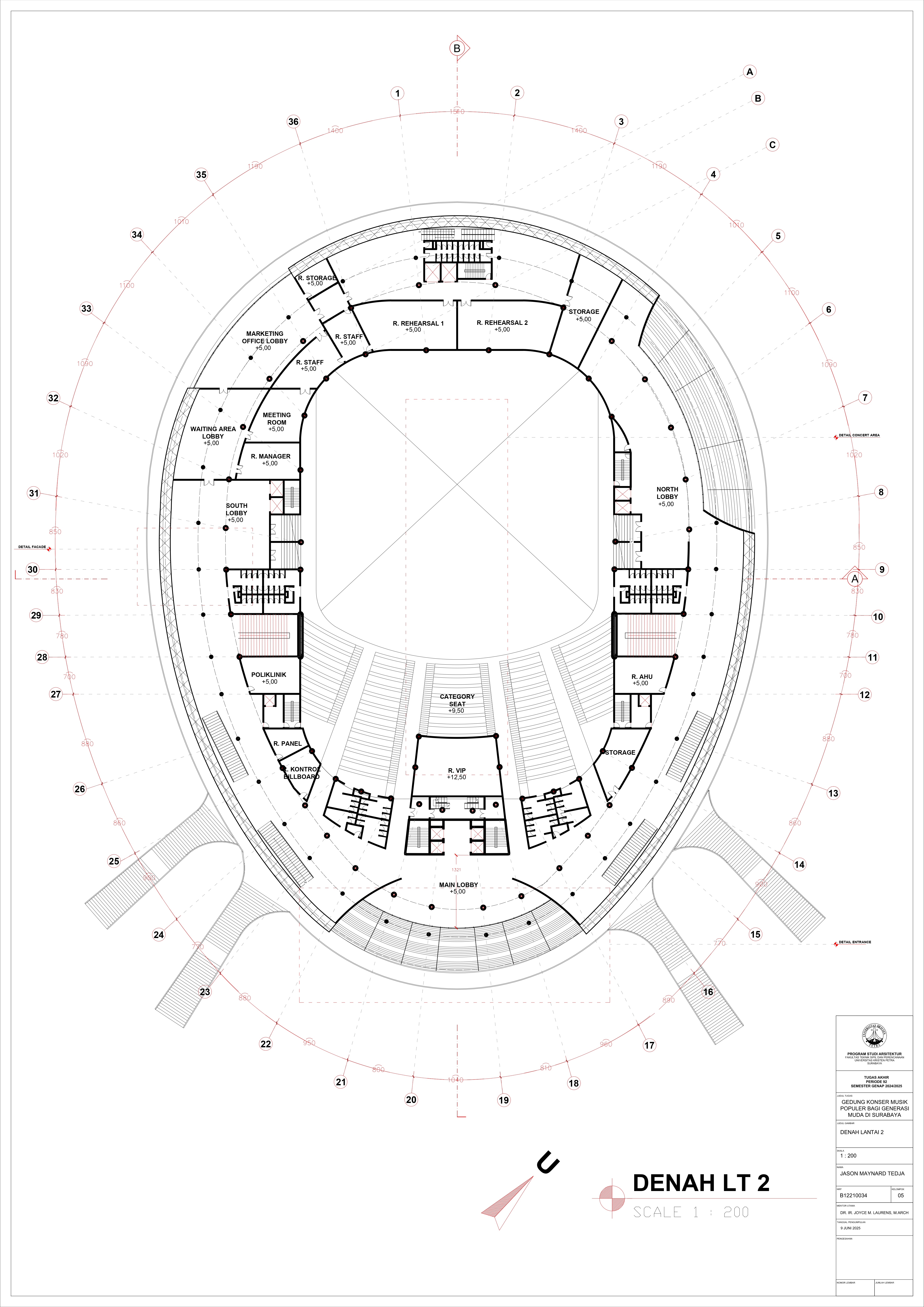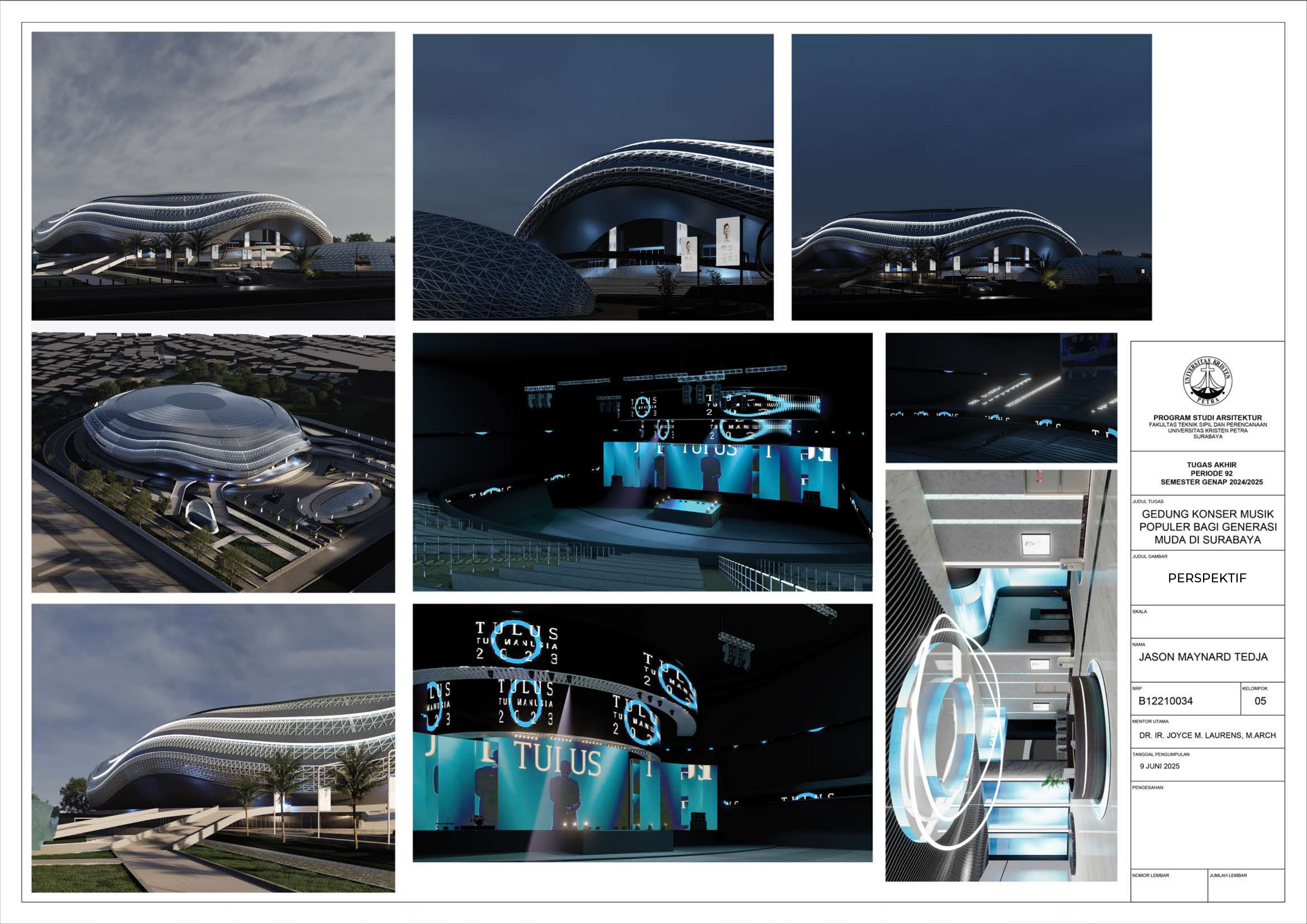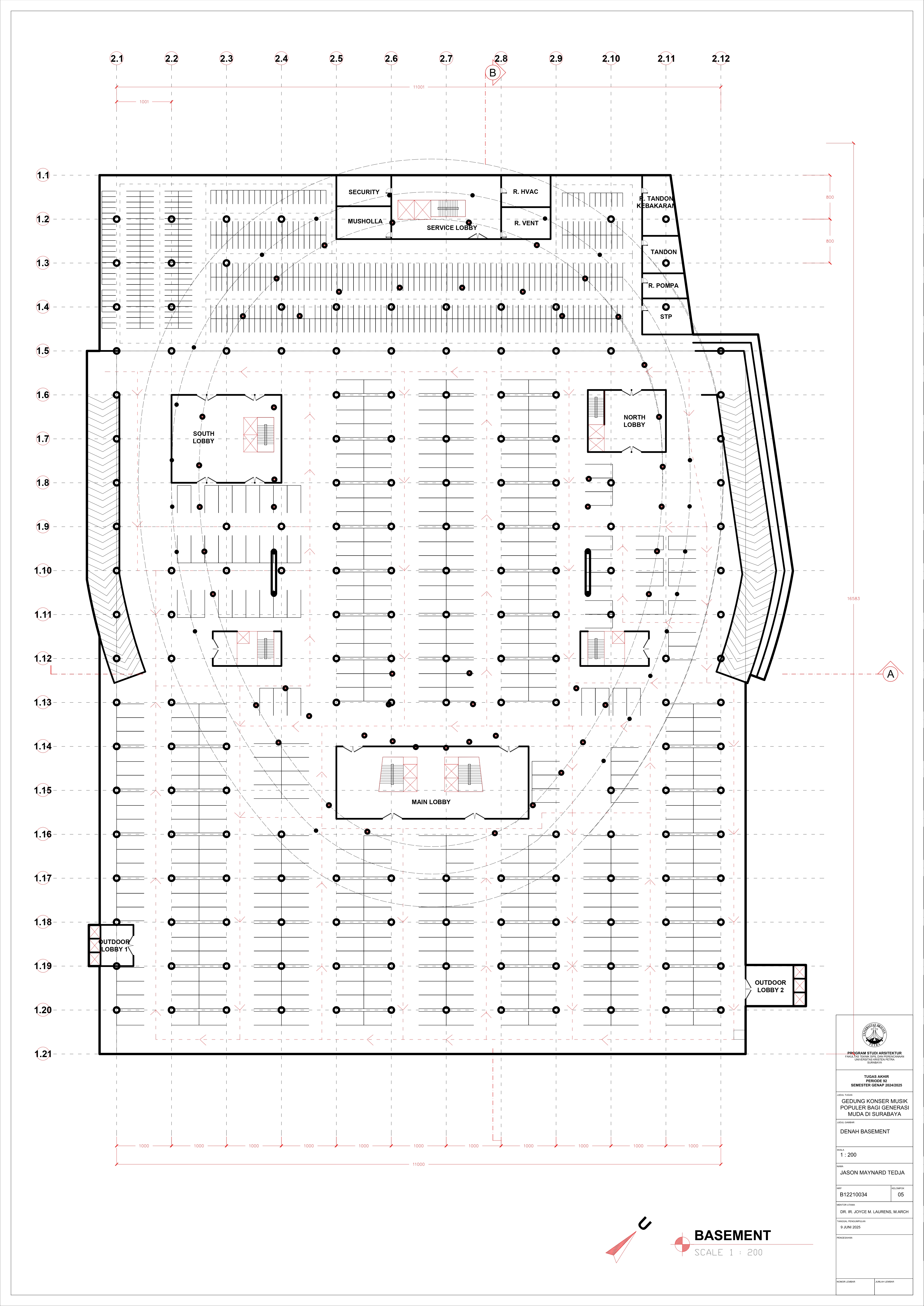 JASON MAYNARD TEDJA Joyce M.Laurens (Advisor 1); Elvina Shanggrama Wijaya, S.T., M.T. (Examination Committee 1); Aris Budhiyanto, S.T., M.Sc., Ph.D. (Examination Committee 2); Roni Anggoro, S.T., M.A.Arch. (Examination Committee 3); Luciana Kristanto, S.T., M.T. (Examination Committee 4); Dr. Feny Elsiana, S.T., M.T. (Examination Committee 5) Universitas Kristen Petra Indonesian Digital Theses Undergraduate Thesis Laporan Perancangan Arsitektur Laporan Perancangan Arsitektur No. 00024653/ARS/2025; Jason Maynard Tedja (B12210034) CONSERVATORIES OF MUSIC; MUSIC-HALLS--DESIGNS AND PLANS