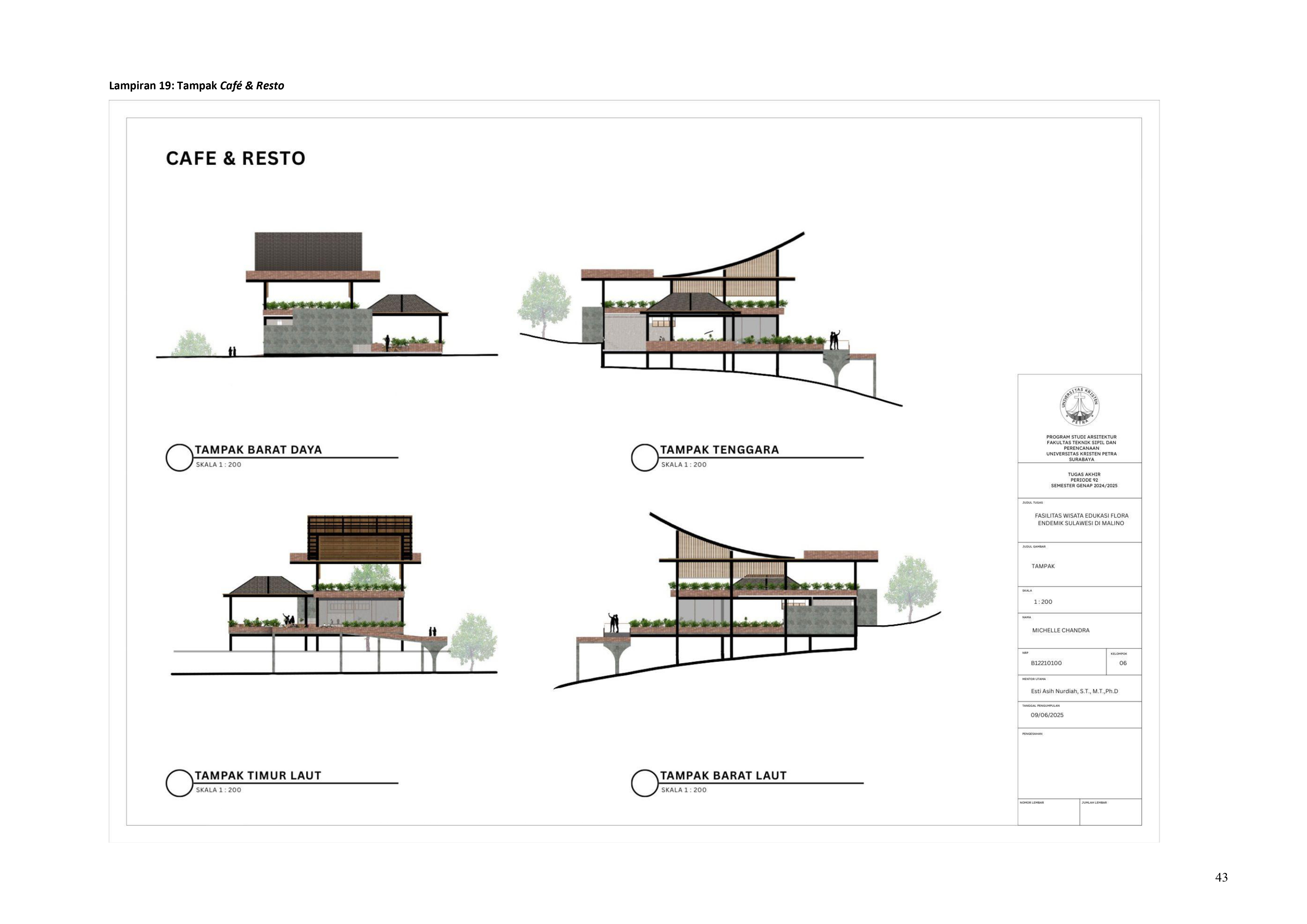 MICHELLE CHANDRA Esti Asih Nurdiah, S.T., M.T., Ph.D. (Advisor 1); Altrerosje Asri, S.T., M.T. (Examination Committee 1); Wanda Widigdo Canadarma (Examination Committee 2); Bram Michael Wayne, S.T., M.Ars. (Examination Committee 3); Dr. Ir. Agus Dwi Hariyanto, S.T., M.Sc. (Examination Committee 4) Universitas Kristen Petra English Digital Theses Undergraduate Thesis Laporan Perancangan Arsitektur Laporan Perancangan Arsitektur No. 00024682/ARS/2025; Michelle Chandra (B12210100) EDUCATION PARKS--DESIGNS AND PLANS; RECREATION CENTERS--DESIGNS AND PLANS; PLANT CONSERVATION