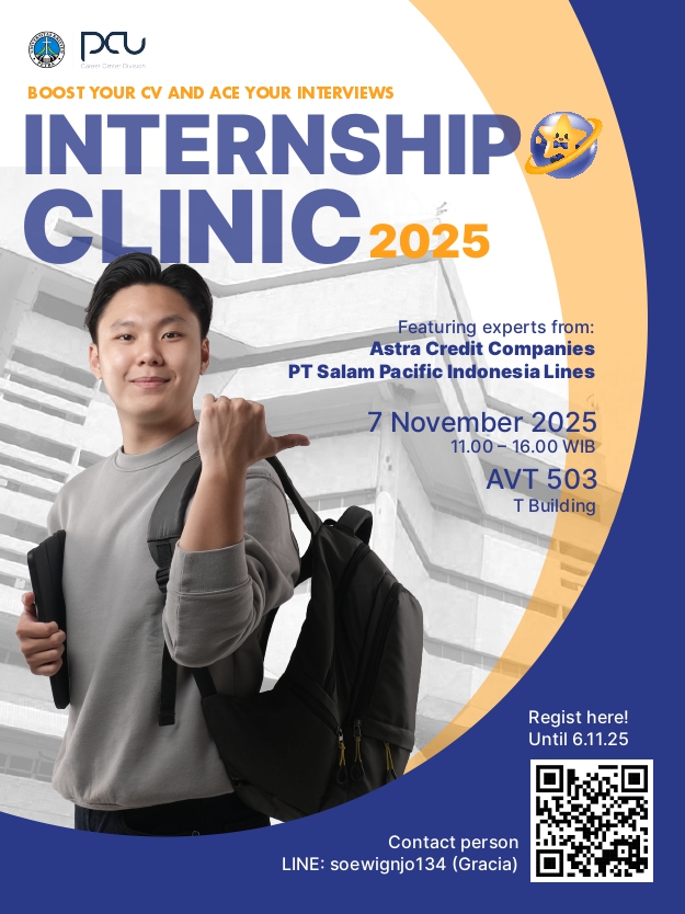 Pusat Karir Universitas Kristen Petra Surabaya mengadakan acara Internship Clinic 2025. Acara ini diadakan Petra Career Center untuk persiapan magang mahasiswa angkatan 2023. Dalam pelatihan ini yang diajarkan terdiri dari buat CV dan interview. Diselenggarakan pada 07 November 2025, di AV.T.503.