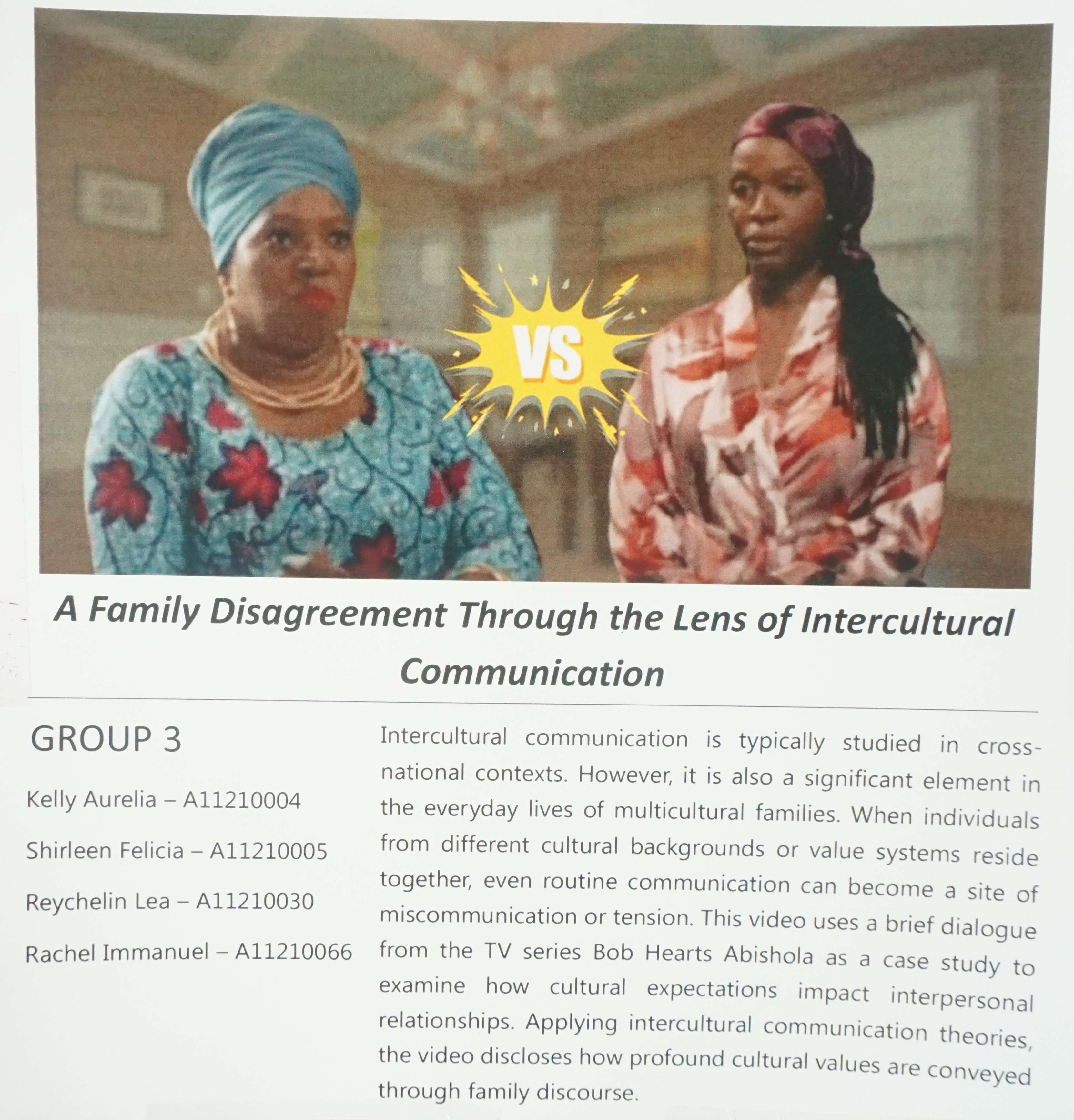 Poster ini dibuat untuk final project exhibition dari mahasiswa Program Studi English for Creative Industry. Salah satu materi pameran adalah A Family disagreement through the lens of intercultural communication.
