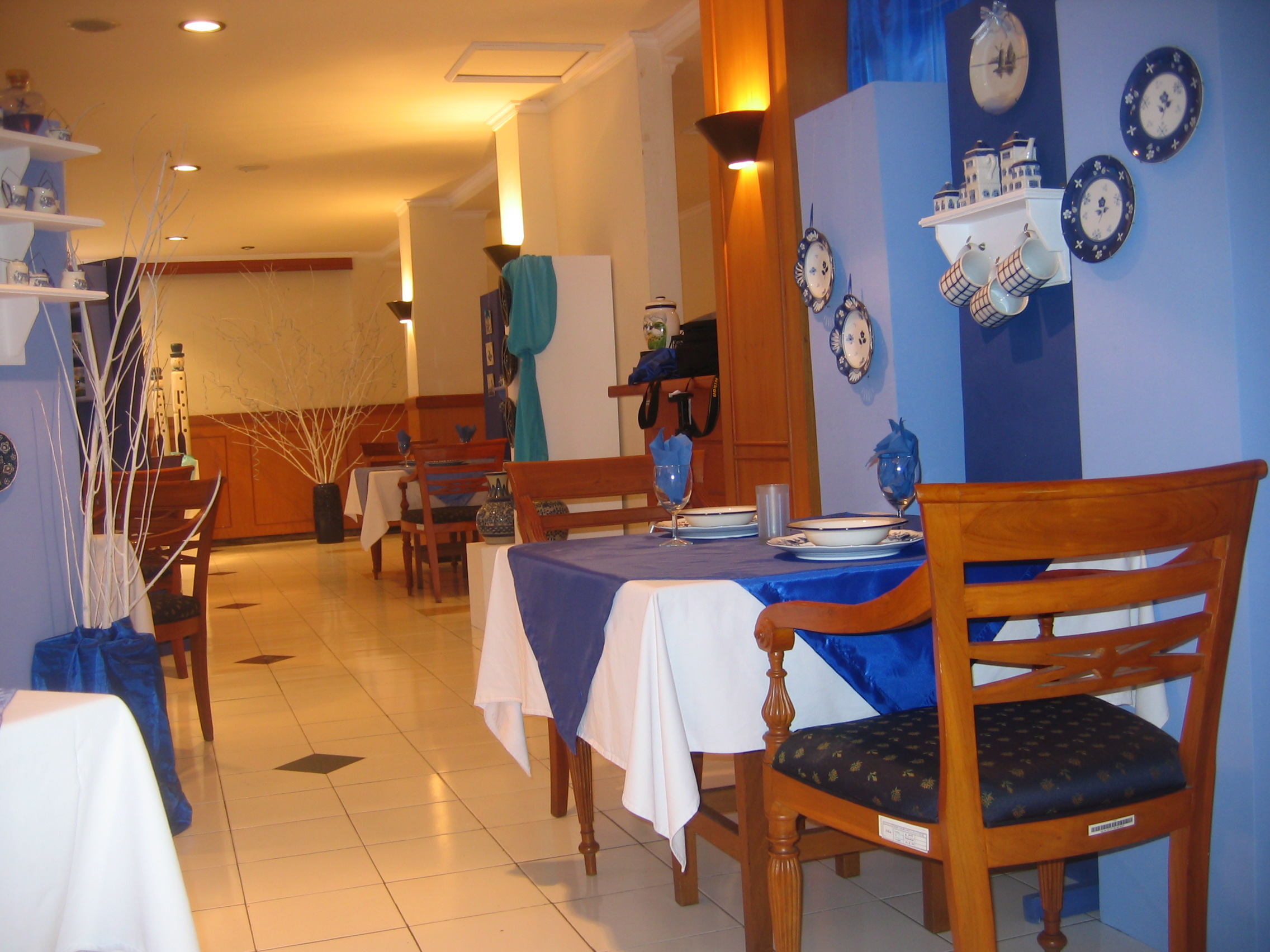 Kafe ini didesain untuk pasangan muda yang sedang berbulan madu dengan nuansa biru dan terkesan private tetapi hangat.